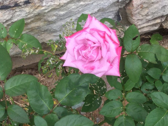 A friend dropped off a Rose bush somewhere around a month ago. The first night a deer ate every single rose flower off the plant. We kept it watered and a couple of weeks ago I finally planted it hoping it would survive. It finally bloomed another rose.