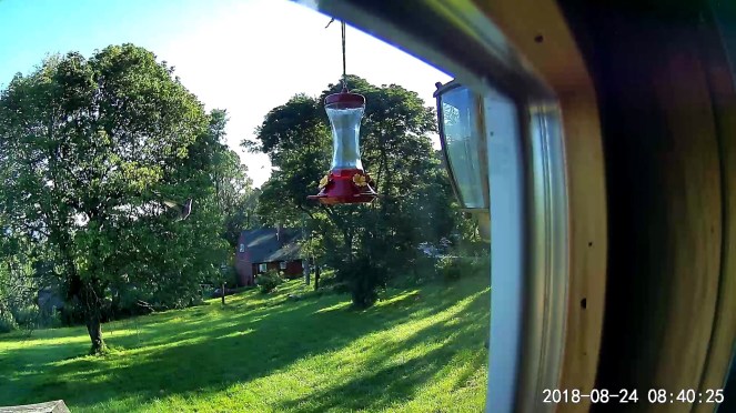 Every time I try to ID a hummingbird it comes back with Ruby Throated. I happened to see this one buzz the seed feeder and went back to video of the hummingbird feeder from the same time and see he found it.