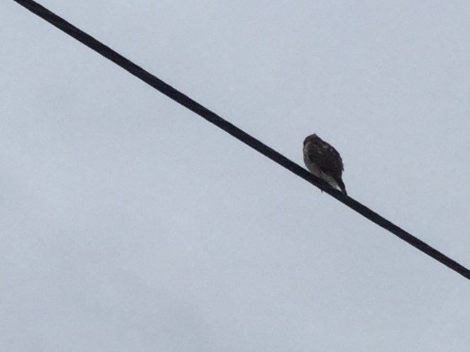 It stayed on the wire as I drove up to/below it and didn’t really moved while I grabbed a couple pictures.