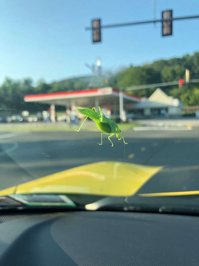 With the COVID19 pandemic I have been working from home a lot. One day last week I had to go into the office. I removed the car cover and in the 5 minutes between uncovering the car and leaving I had this little guy show up on my windshield.