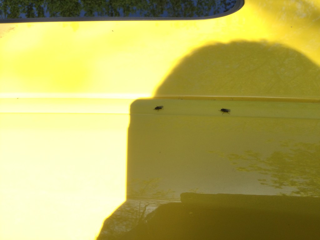 When we were leaving for the cemetery and I was waiting for everyone to get in the car, I saw a number of flies land on the car. Below is a picture of two that I was able to get before we left.